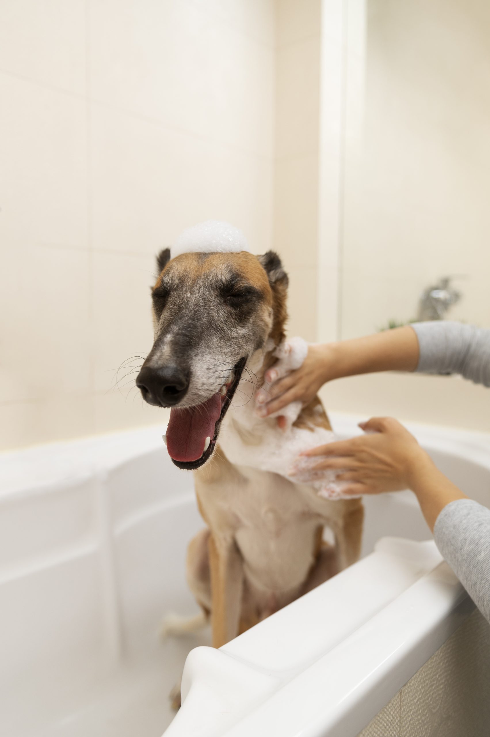 Refreshing and hygienic bathing services using pet-friendly products to keep your dog clean, fresh, and skin